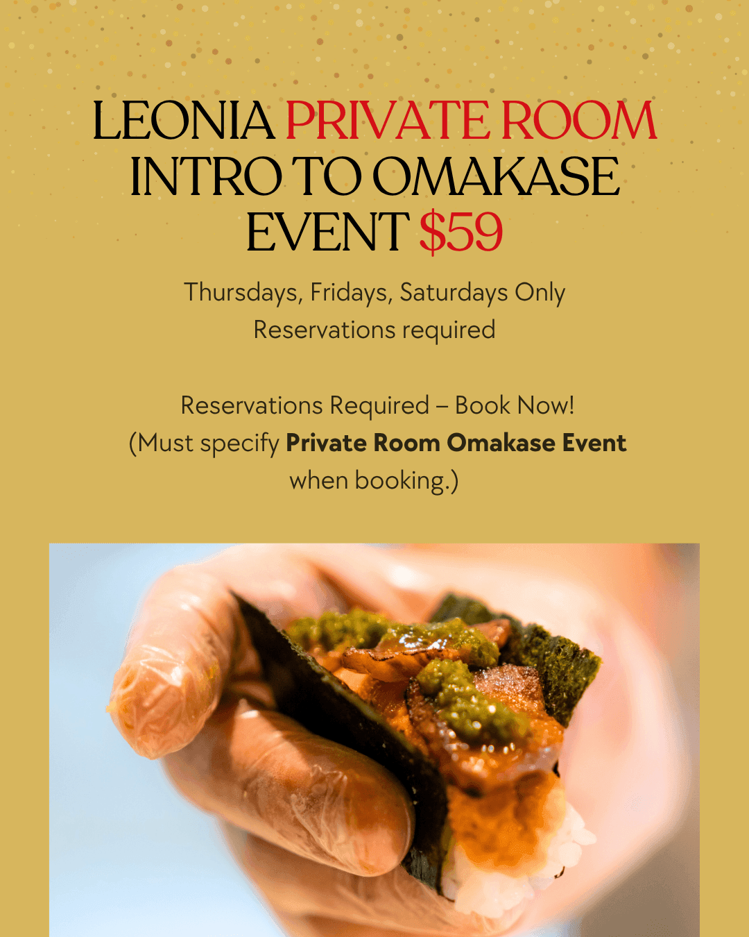 Enjoy our $59 Leonia Private Room Intro to Omakase Event in an intimate private dining setting